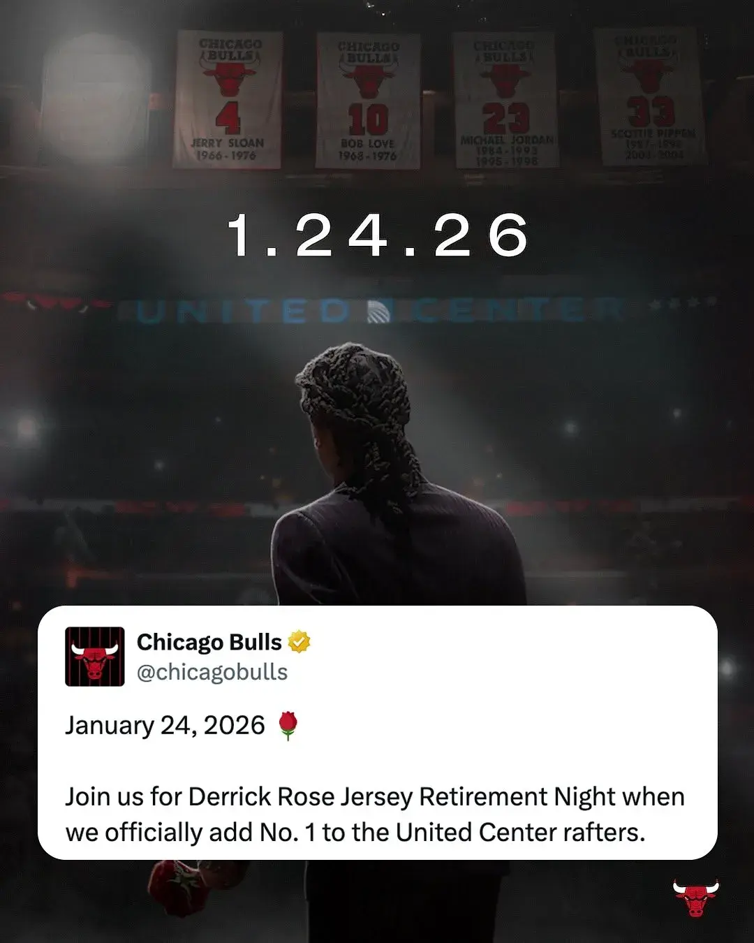 芝加哥公牛正式对外宣布寻钱网,将在2026年1月24日的时候,退役风城玫瑰德里克罗斯的1号球衣号码。曾经的芝加哥公牛王者,终于迎来了自己公牛职业生涯最伟大的结尾。